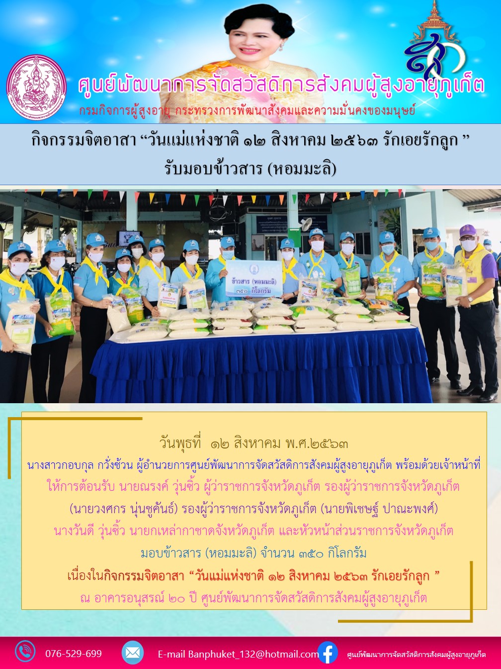 ร่วมกิจกรรมจิตอาสา"วันแม่เเห่งชาต 12 สิงหาคม 2563 รักเอยรักลูก "